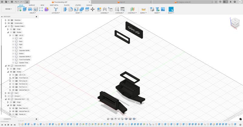 Based on my previous project making a 2.1 channel speaker system, using the things I have learnt, I am designing a new set of floorstanding speakers. The goal of this project is to achieve more precise and accurate sound reproduction, by improving transient response with smaller subwoofer drivers and by using drivers with more optimal Thiele/Small parameters. So far, I have designed the enclosure in Fusion 360 and simulated it in WinISD to get the design optimised. In this project, I will also be leveraging my improved skills in 3D printing to incorporate flaring to the port and and decorative parts.